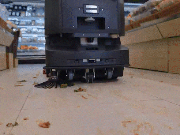 Das Schrubbdeck fährt physikalisch aus, um Wände und Regalkanten zu erreichen. Entfernt gründlich Staub und Schmutz an den Rändern, verbessert die Reinigungsabdeckung und minimiert manuelle Nachbesserungen.