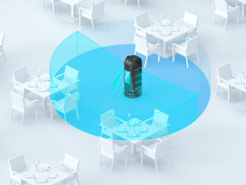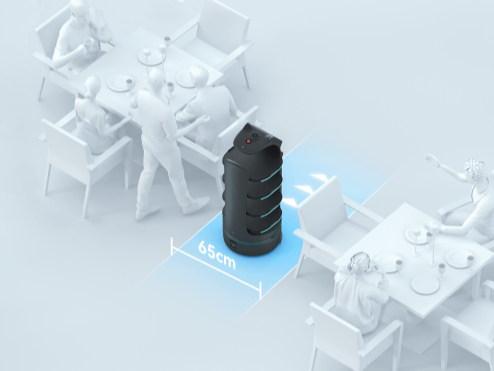 Reibungslose Mobilität bei gleicher Größe wie große Lieferroboter und kompetente Navigation durch komplexe Restaurantumgebungen.