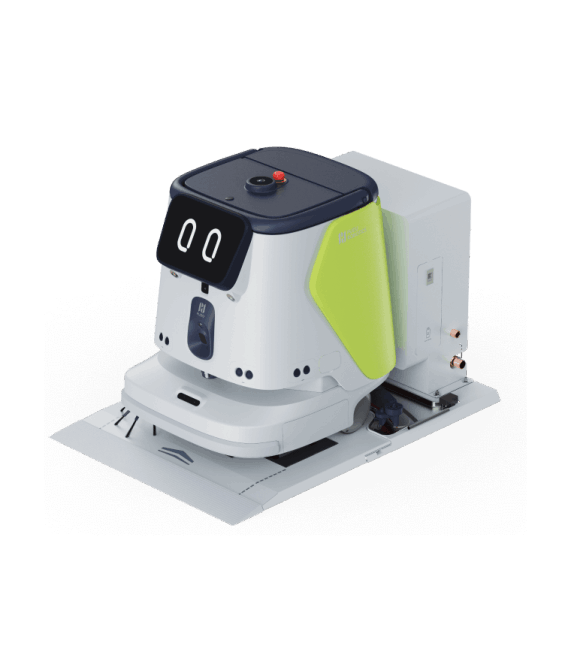 Der Roboter speichert seinen Aufgabenstatus und die Position und kehrt automatisch für den Ladevorgang zur Ladestation (optional) zurück, mit der Docking Station (optional) füllt er auch den Frischwassertank und lässt Schmutzwasser ab, ohne Menschliches Eingreifen.