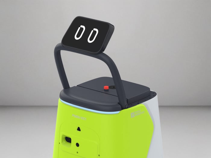 Ausziehbarer Griff mit Display zur einfachen Erstellung von Reinigungsplänen und zur manuellen Bewältigung von unerwarteten Reinigungsnotfällen.