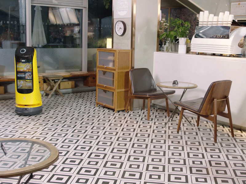 KettyBot Pro kann in bestimmten Bereichen umherfahren, um Kunden Snacks und Getränke anzubieten und Ihre Werbebotschaft nach außen zu tragen.