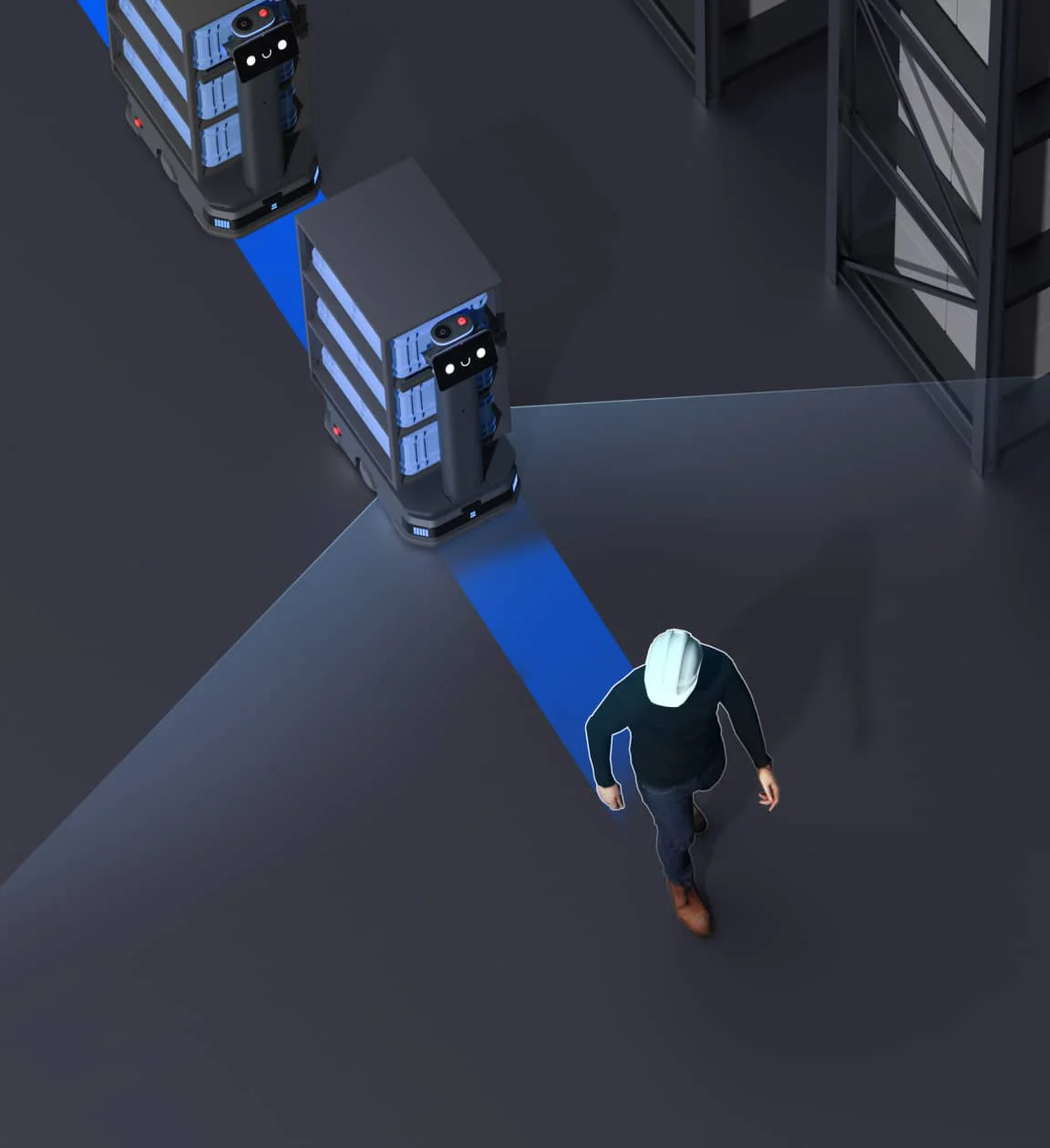 Der T300 nutzt visuelle Erkennung um z.B. jemandem zu folgen oder auch mehrere Roboter hintereinander sich gegenseitig folgen zu lassen. Perfekt für "Picker" oder den Transport von Waren in der Produktion.