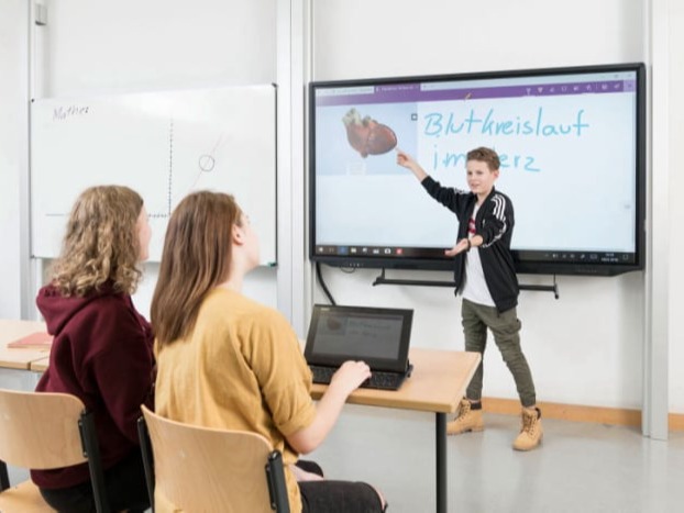 Touchscreens als digitale Tafel sind die perfekte Lösung, um Effektivität und Lernmotivation im Unterricht signifikant zu steigern. Sie sind Leinwand, Internet, Flip-Chart, Overhead Projektor, PC, Fernseher und Videokonferenzsystem in einem. Die einfache Bedienung schafft interaktive Lernerlebnisse und die praktischen Funktionen erhöhen die Aufmerksamkeit bei Schülern. Der Lernerfolg ist quasi garantiert, sowohl bei Präsenz- als auch hybridem Unterricht. Bildungseinrichtungen wissen ganz genau, hinter jedem guten Lehrenden steht ein guter Touchscreen, der die Zusammenarbeit fördert - die Zukunft ist Digital.